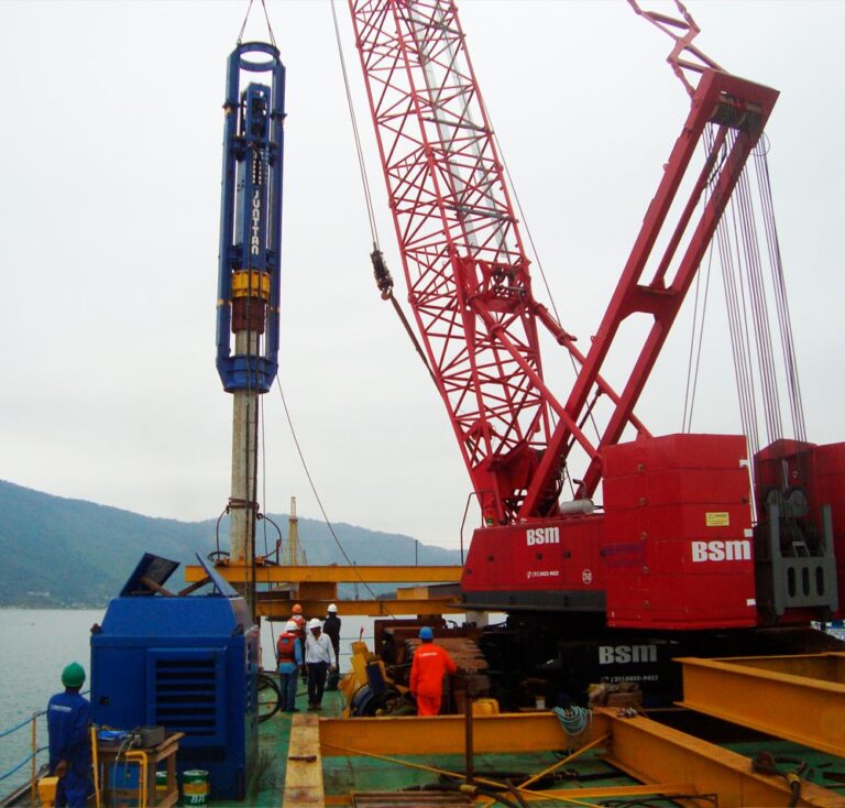 Hincado de pilotes verticales e inclinados. En plataformas marinas y terrestres.