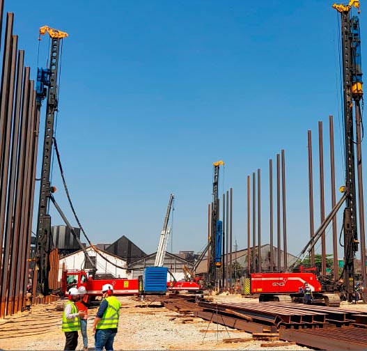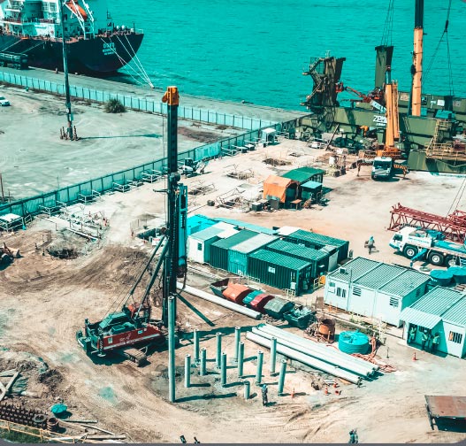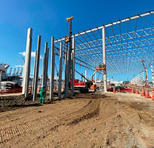A obra iniciada no Terminal DP World teve como objetivo a execução de cravação de 1.372 estacas pré-moldadas.